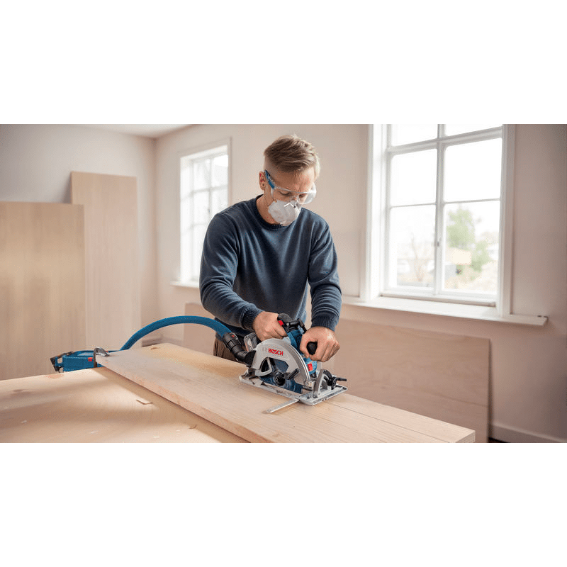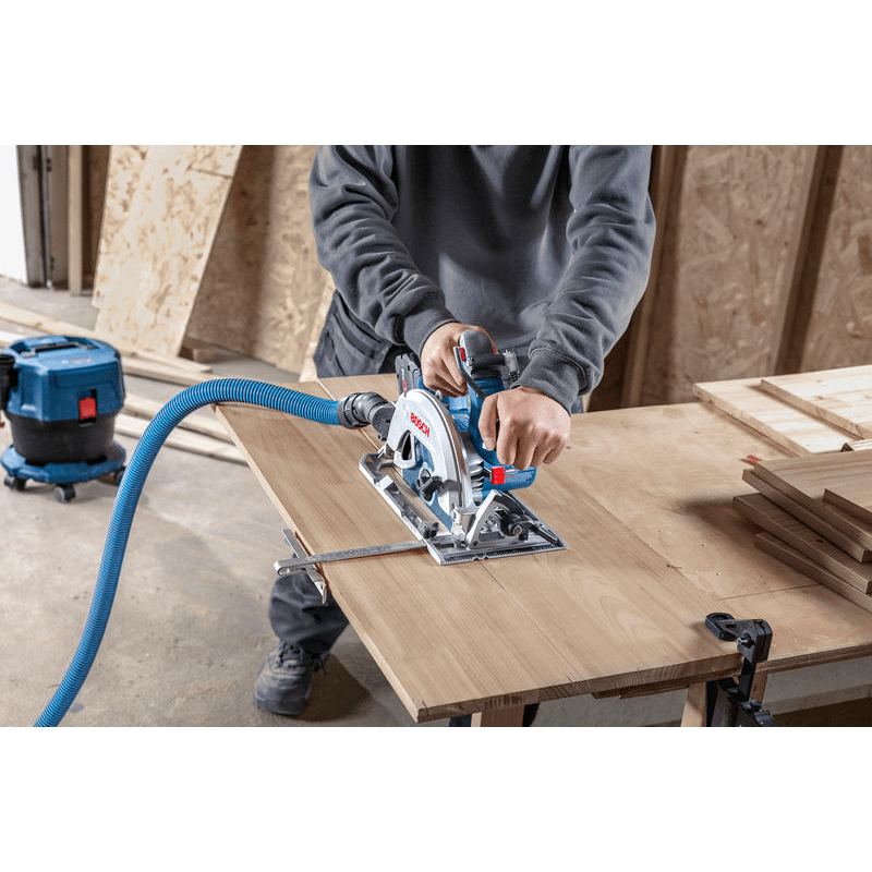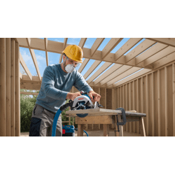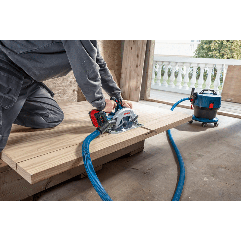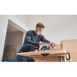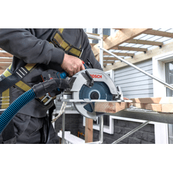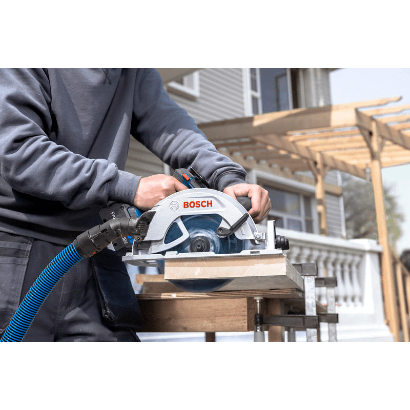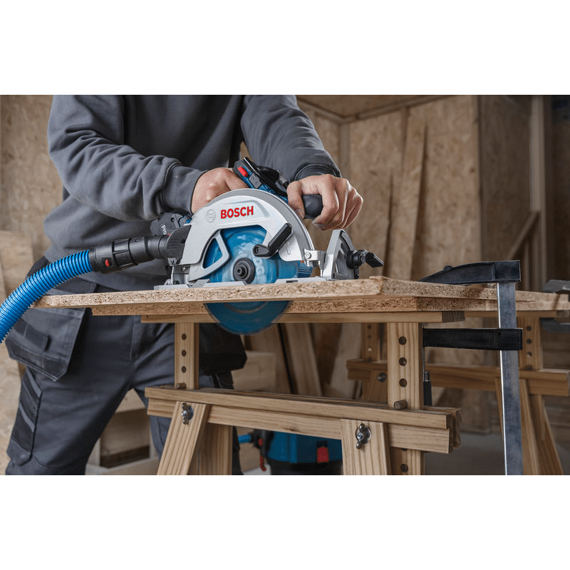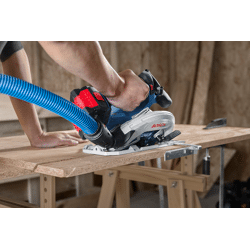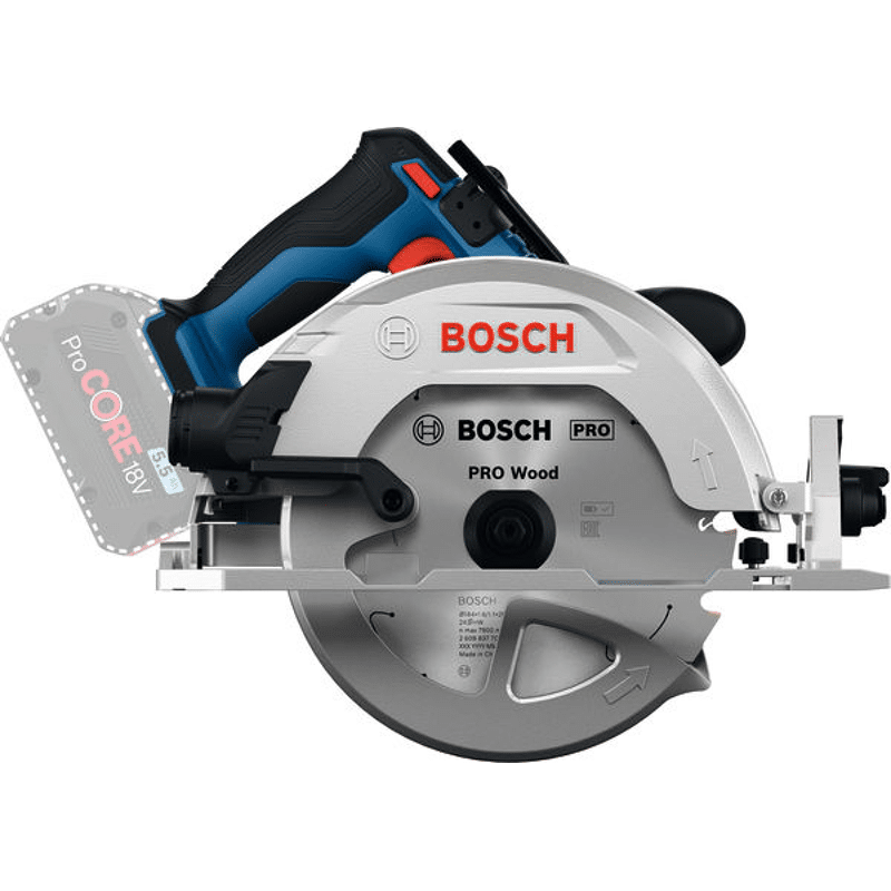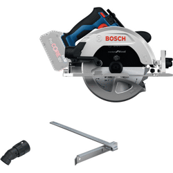 Akku-Kreissäge GKS 18V-68-2, Wenn du eine leistungsstarke Akku-Kreissäge benötigst, die selbst zähe Materialien schnell und präzise schneidet, ist die Bosch GKS 18V-68-2 genau das Richtige für dich. Die robuste Säge bewältigt Weich- oder Hartholz ohne Blockieren sowie anspruchsvolle Arbeitslasten dank ihrer erhöhten Überlastfähigkeit. Die GKS 18V-68-2 liefert nötige Power, um deine Leistung zu steigern, ohne ein Kabel zu benötigen. Dank ihres starken bürstenlosen Motors bietet sie eine überragende Schnittgeschwindigkeit und bietet Schutz durch KickBack Control. Die PRO GKS 18V-68-2 ist für Kapp-, Längs- und Schrägschnitte in unterschiedlichen Holzarten von Kiefer bis Nussbaum sowie mehrschichtigen OSB-Platten geeignet. Die PRO GKS18V-68-2 verfügt über einen Paddelschalter und liefert eine Leistung, die mit der einer kabelgebundenen 1400-W-Säge vergleichbar ist. Sie ist mit einem intelligenten Bremssystem ausgestattet und wiegt nur 3,5 kg (ohne Akku und Sägeblatt). Sie verfügt außerdem über einen Absaugadapter. Parallelanschlag (1 619 P16 999). Sägeblatt Holz