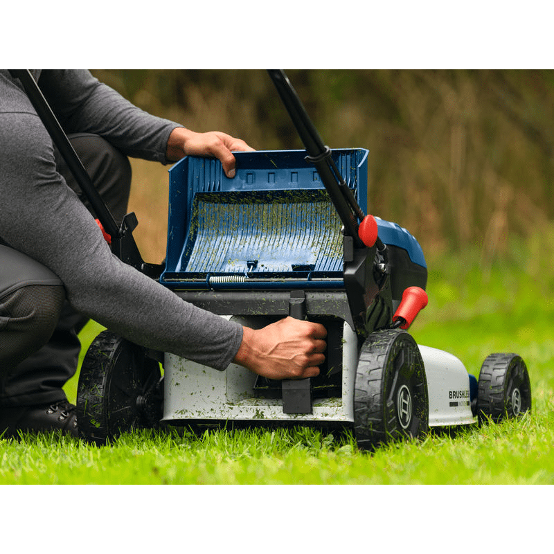 Der bürstenlose Motor läuft mit zwei 18V-Akkus für starke Leistung, höhere Lebensdauer und längere Laufzeit
