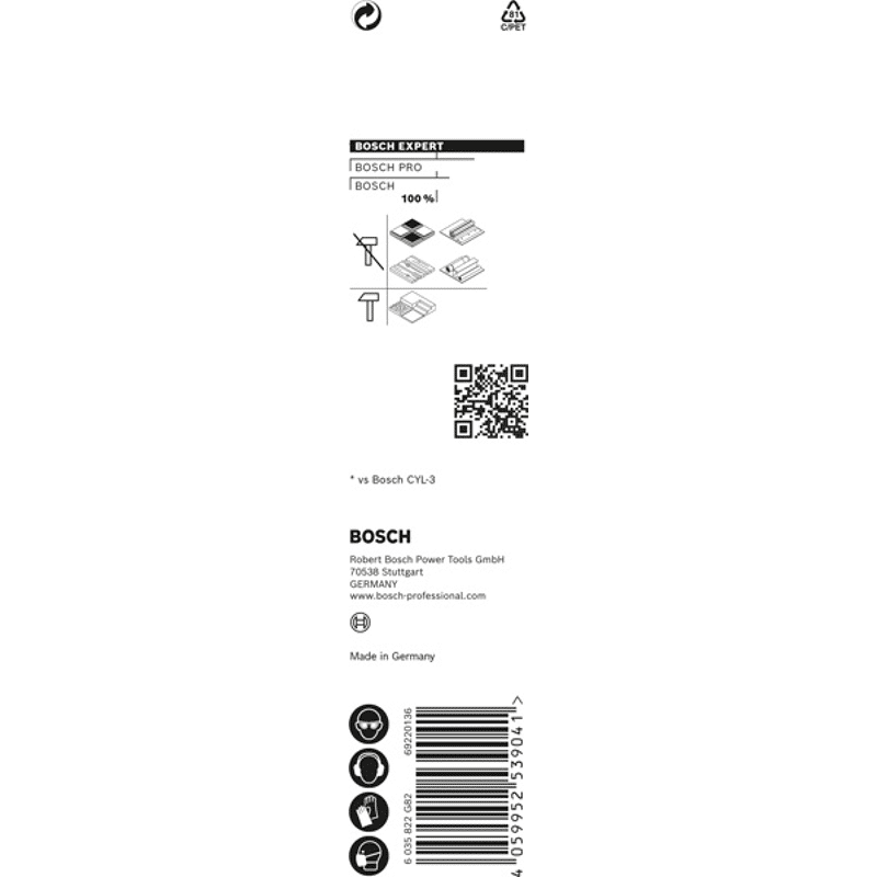 Hochpräzises Bohren in verschiedene Materialien! Präzises Anbohren von Löchern dank einer speziell konzipierten Zentrierspitze Moderne Baustellen erfordern das Arbeiten mit vielen verschiedenen Materialien und man weiß nie, was man als Nächstes bohren muss. Es kann schwierig und zeitaufwendig sein, den richtigen Bohrer zu finden – es sei denn, du hast den EXPERT Multi Construction-Bohrer. Der Bosch EXPERT CYL-9 Multi Construction-Rundschaftbohrer darf in keinem Werkzeugkasten fehlen: Man kann jede Arbeit präzise erledigen und verliert keine Zeit mit der Suche nach dem richtigen Bohrer. Präzises Bohren ist mit Bosch Centering Geometry noch einfacher
