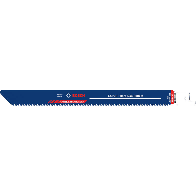 Langlebiges Schneiden von Paletten mit harten Nägeln! Reverse-Spitze verhindert Verklemmen, Verbiegen und Rückschlag Schnelle Schnitte und Langlebigkeit sind für die Reparatur von Paletten unerlässlich. Die harten Nägel in Paletten beanspruchen die Sägeblätter jedoch extrem. Die EXPERT Hard Nail Pallets sind speziell zum Schneiden von Nägeln in Paletten konzipiert. Sie bietet unübertroffene Leistungsfähigkeit, Produktivität und Langlebigkeit. Harte Nägel haben Reparaturarbeiten an Paletten bisher immer zum Stillstand gebracht, Blätter zerstört und die Produktivität beeinträchtigt. Mit dem Bosch EXPERT Hard Nail Pallets Säbelsägeblatt schneiden Sie sie einfach durch. Überragende Lebensdauer dank Bosch Carbide Technology