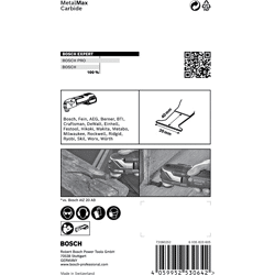 Herausragende Lebensdauer in harten und zähen Metallen! Zusätzliche Beschichtung macht Carbide härter Wenn gehärtete Schrauben rosten oder auf andere Weise stecken bleiben, besteht die einzige Option darin, sie flach an der Oberfläche abzuschneiden. Der EXPERT MetalMax macht auch in gehärtetem Metall einen perfekten bündigen Schnitt. Mit seiner herausragenden Langlebigkeit ist es das perfekte Zubehör für Handwerker, die harte Materialien mit einem Multifunktionswerkzeug schneiden möchten. Du hast gesehen, wie mühelos das Multifunktionswerkzeug in und durch Holz sägen kann: Mit dem Bosch EXPERT MetalMax Blatt für Multifunktionswerkzeuge kann Metall genauso zersägt werden. Es sägt sogar mühelos gehärtete Fensterschrauben und Armierungen. Überragende Lebensdauer dank Bosch Carbide Technology