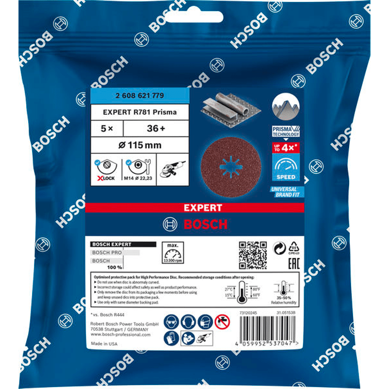 Hochgeschwindigkeitsschleifen von Metall! Selbstschärfend und damit schneller und langlebiger Das Abtragen der Schweißnähte von Metallwerkstücken ist anstrengend und zeitaufwändig. Wenn der Prozess beschleunigt werden kann, lässt die Prisma Fiberscheibe professionelle Verwender wesentlich effizienter arbeiten. Und mit der EXPERT R781 Prisma-Fiberscheibe kannst du sehr viel schneller schleifen. Die Bosch EXPERT R781 Prisma-Fiberscheibe für Metall ermöglicht es dir, Metall viel schneller als herkömmliche Scheiben zu schleifen, ohne Kompromisse bei der Qualität. Sie ermöglicht daher professionellen Winkelschleiferanwendern ein produktiveres Arbeiten. Schneller Materialabtrag mit Bosch Prisma Ceramic Technologie