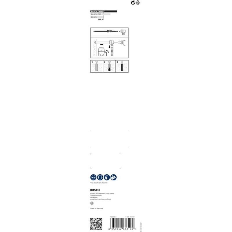 Bohren in Stahlbeton mit verbesserter Staubreduzierung! Durchdringt Stahlbeton mit einem Voll-Carbide-Kopf mit 4 Schneidern Das Bohren präziser Löcher in Beton ist nur ein Schritt bei der Installation chemischer Dübel. Der nächste Schritt besteht in zeitraubenden Reinigungsarbeiten. Mit dem EXPERT SDS Clean max-8X wird alles anders. Das System bohrt Löcher und entfernt gleichzeitig Staub. Das beschleunigt und vereinfacht die Installation chemischer Dübel. Wir haben EXPERT SDS Clean max-8X Bohrer für Bauarbeiter und Installateure entwickelt, die Löcher für chemische Dübel bohren müssen. Der Bohrer ist mit einem 4-Schneider-Vollhartmetallkopf und einem robusten Staubsaugerrohr ausgestattet. Das Zubehör wird zusammen mit dem SDS Clean max Anschluss eingesetzt, der für alle SDS Clean max-8X Bohrer geeignet und ebenso einfach zu montieren wie abzunehmen ist. Du erhältst also einen leistungsstarken Bohrer, der bei Verstopfung leicht zu reinigen ist (einfach das Absaugrohr vom Bohrer abnehmen) sowie eine neue Technologie zur Staubreduzierung, mit der du Löcher für chemische Dübel schneller vorbereiten kannst. Zudem ist die Luft am Arbeitsplatz sauberer. Hocheffizienter Abtransport von Staub mit Bosch Particle Control