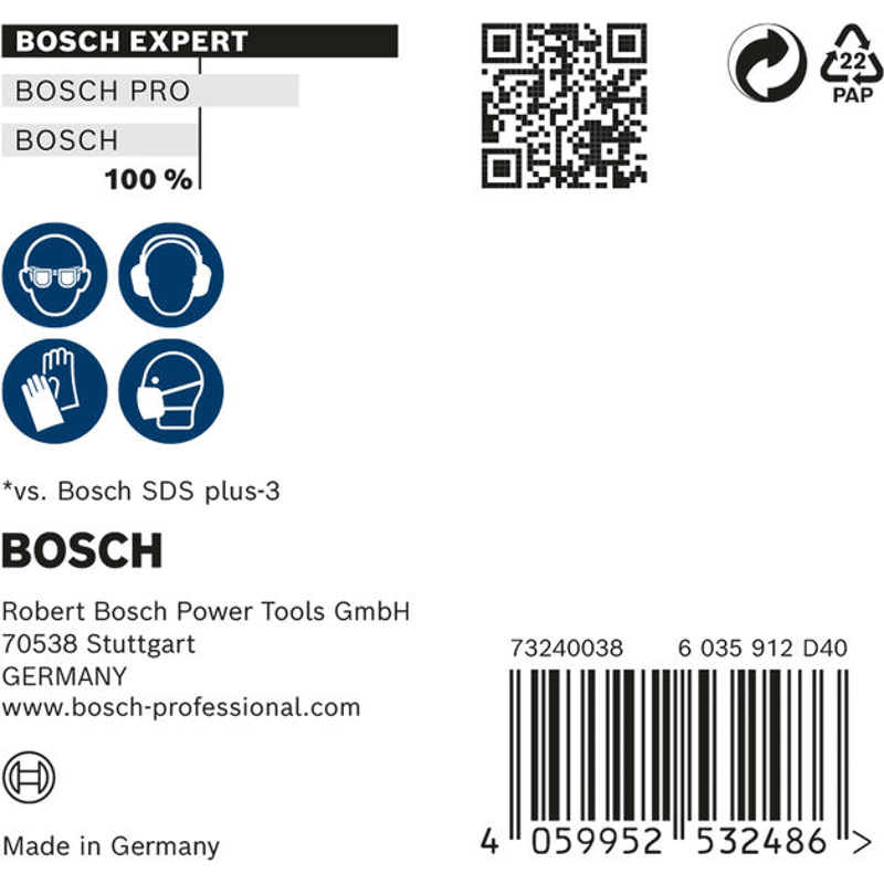 Herausragende Lebensdauer in Stahlbeton! Durchdringt Stahlbeton mit einem Voll-Carbide-Kopf mit 4 Schneidern Das Bohren durch Stahlbeton ist eine schwierige Aufgabe, die den Bohrern viel abverlangt. Normale Bohrer mit zwei Schneidekanten bleiben in der Armierung stecken und brechen ab. Der Vollhartmetallkopf auf dem EXPERT SDS plus-7X ist ein fortschrittlicher 4-Schneider, der aus einem einzigen Stück des härtesten Metalls besteht: Es verklemmt nicht und zeigt keine Schwäche beim Hammerbohren. Für Bauprofis, die regelmäßig in Beton und Stahlbeton bohren, beispielsweise für Bohrungen und Installationen. Der Bosch EXPERT SDS plus-7X Hammerbohrer bietet unvergleichliche Leistung, Zuverlässigkeit und Langlebigkeit. Es ist DAS EXPERTen-Zubehör für SDS plus Bohrhämmer. Außergewöhnlich ausdauernder Bohrer mit Bosch Carbide Technology