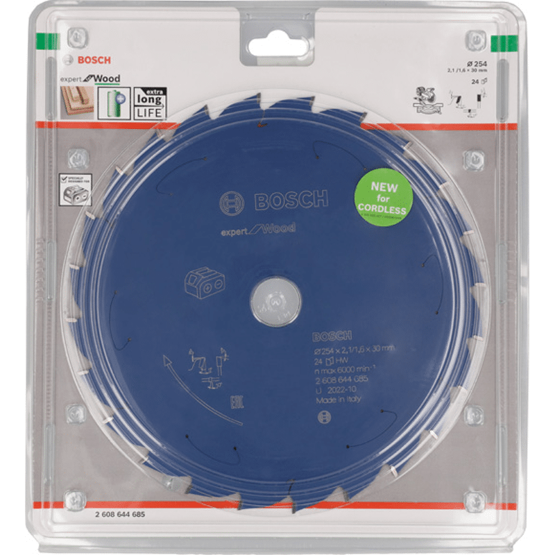Das Kreissägeblatt Expert for Wood maximiert die Akkulaufzeit von Akkusägen. Die extraschmale Schnittfuge und der aggressive Zahnwinkel verringern Reibung und Materialabtrag. Das bedeutet weniger Leistungsbedarf für müheloses, sauberes Sägen. Dieses Sägeblatt ist bis zu 30 % dünner als die normalen Sägeblätter des Typs Expert. Die Lebensdauer ist dennoch erstklassig. Die MicroteQ-Zähne aus Carbide gewährleisten bei Holzarbeiten hohe Langlebigkeit und erstklassige Leistung. Das ideale Sägeblatt für alle Arten von Holz und Holzwerkstoffen. Das Kreissägeblatt Expert for Wood zeichnet sich durch MicroteQ-Zähne der Eigenproduktion aus. Sie sind für erstklassige Lebensdauer aus besonders feinkörnigem und haltbarem Carbide-Korn gefertigt. Die Korrosionsschutzbeschichtung ProteQtion verringert Reibung, vermeidet Rost und ermöglicht dauerhaft hohe Sägeleistung.