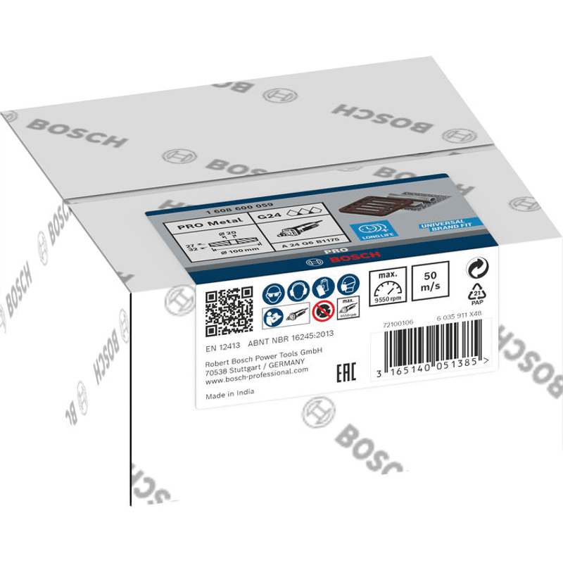 Herausragende Lebensdauer beim Schleifen von Metall! Robuste Aluminiumoxid-Körner für lang anhaltende Leistung Benötigst du eine starke und langlebige Schleifscheibe zum Nachschärfen deiner Werkzeuge? Oder um die Oberfläche von Metall und Gusseisen zu reinigen? Die Kombination aus Schleifkörnern in Premiumqualität und starkem Bindungsmaterial verleiht dem PRO Metal die Stärke und Ausdauer, die du für die Erledigung deiner Arbeit benötigst. Die PRO Metal Schleifscheibe ist ein langlebiges Zubehör für Metallarbeiter, die Metall- und Gusseisenelemente schleifen müssen. Die Scheibe ist hocheffizient für den Grobschliff und beim Nachschärfen von Werkzeugen. Die Kombination aus hochwertigen Schleifkörnern aus Aluminiumoxid und einer starken Kunstharzverklebung sorgen für Stabilität und Haltbarkeit.