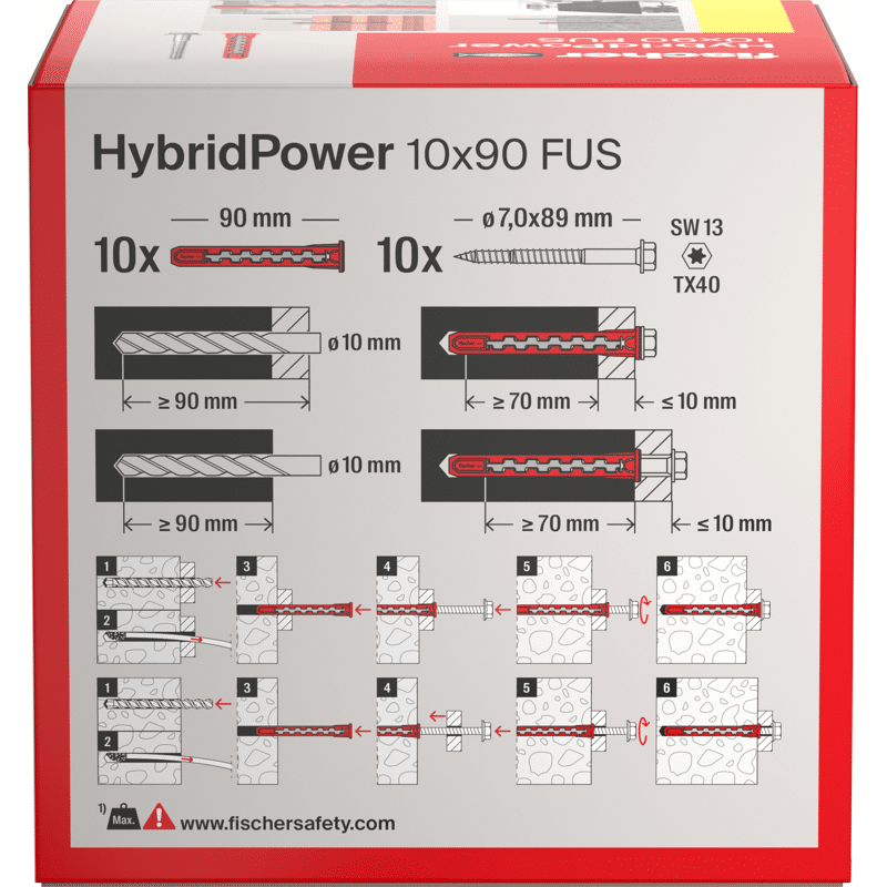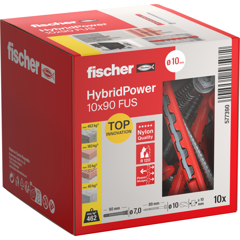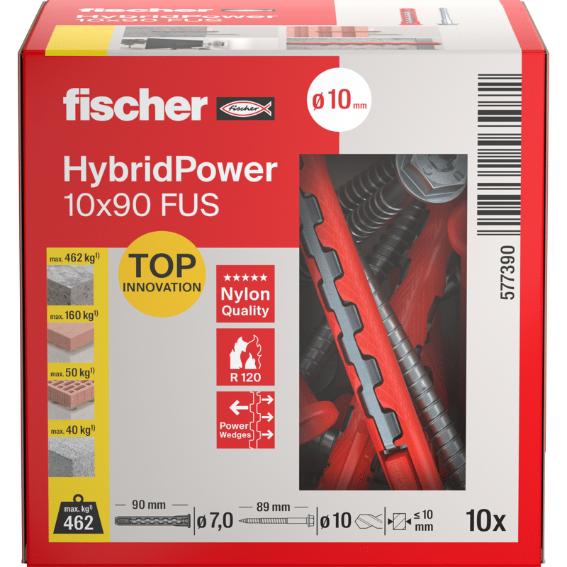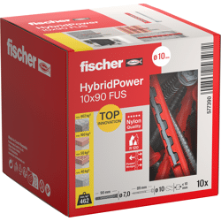 Der fischer HybridPower kombiniert die Vorteile eines klassischen Kunststoffdübels mit der Sicherheit eines Stahlankers. Durch die Kombination der beiden Materialien wird der HybridPower wie ein klassischer Kunststoffdübel gesetzt und kann in allen Baustoffen verwendet werden. Gleichzeitig bietet er hohe Tragfähigkeiten und eine sichere Verankerung, sogar im Brandfall. Das Sortiment ist für Metall- und Holzanbauteile bis 10 mm geeignet. Der Dübel kann in der Vorsteck- oder Durchsteckmontage gesetzt werden.