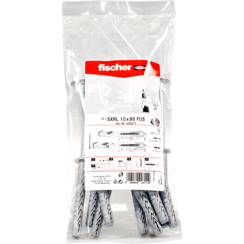 Der fischer Langschaftdübel SXRL-FUS ist mit der fischer Sechskantschraube mit angeformter Scheibe und integrierter Bit-Aufnahme T40 für Mehrfachbefestigungen von nicht tragenden Systemen in Mauerwerk, Beton und Porenbeton zugelassen. In Lochsteinmauerwerk leiten die zwei Spreizzonen des Dübels gleichmäßig Kraft ein, in Porenbeton und Vollbaustoff vereinen sich diese zu einem langen Spreizelement. Mit der Sicherheitsschraube aus galvanisch verzinktem Stahl ist der Langschaftdübel für Befestigungen von Fassaden-, Decken- und Dachunterkonstruktionen aus Metall geeignet.